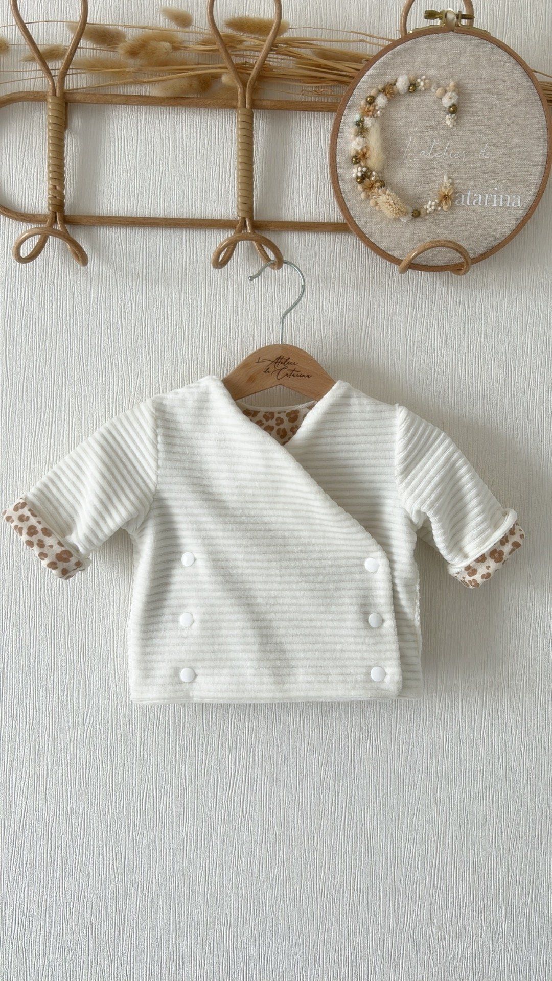 Craquez pour ce gilet bébé aussi pratique qu’adorable. Entièrement confectionné à la main, il allie douceur, confort et style pour accompagner bébé au quotidien.
