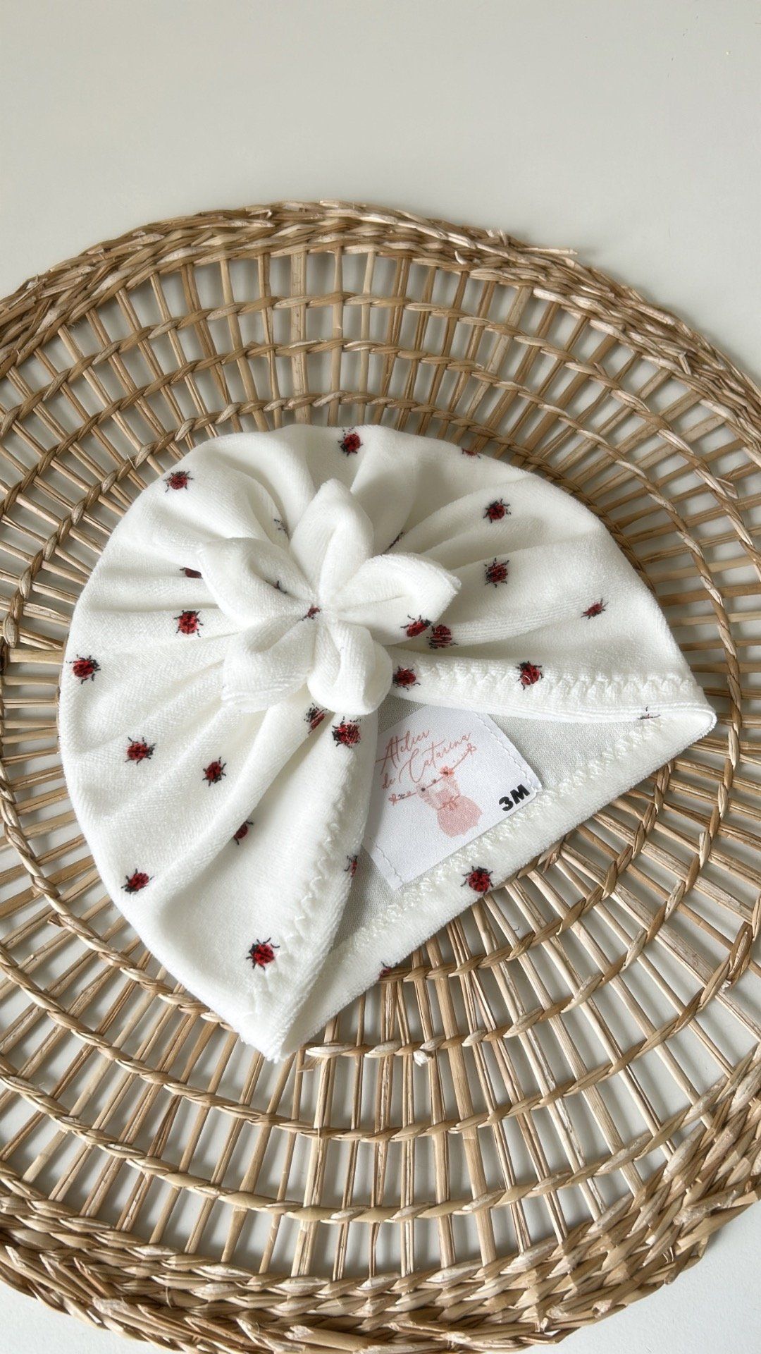 Ajoute une touche d’élégance et de douceur au look de ton bébé avec ce magnifique turban fait main. Confectionné dans un tissu doux et extensible, il s’adapte parfaitement à la tête de bébé tout en assurant confort et maintien.