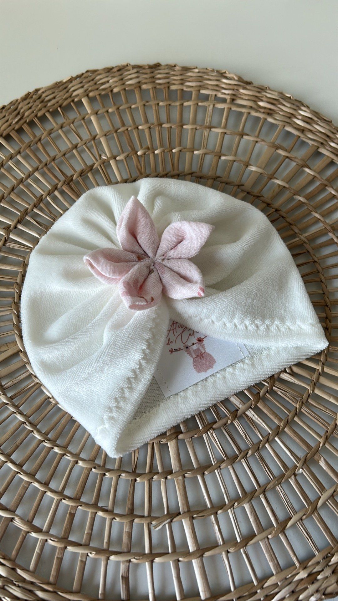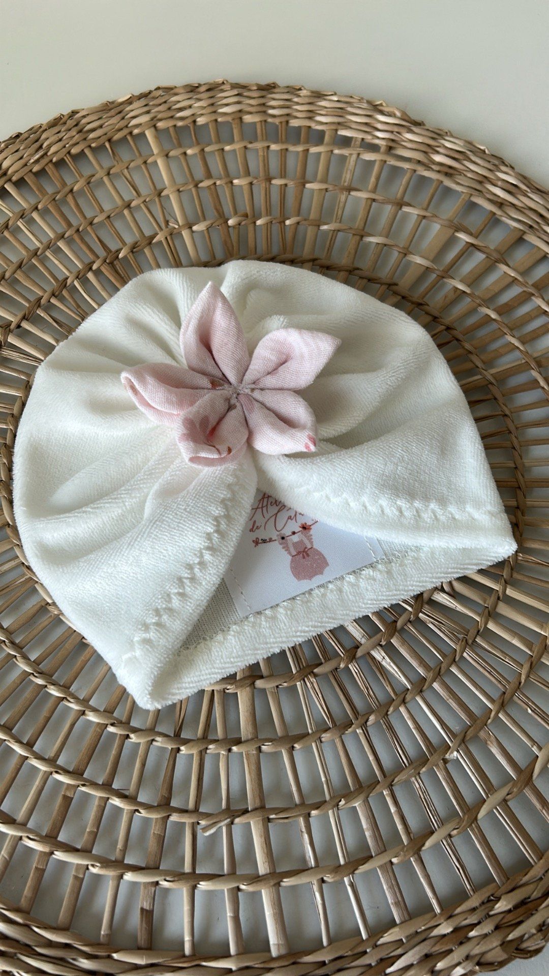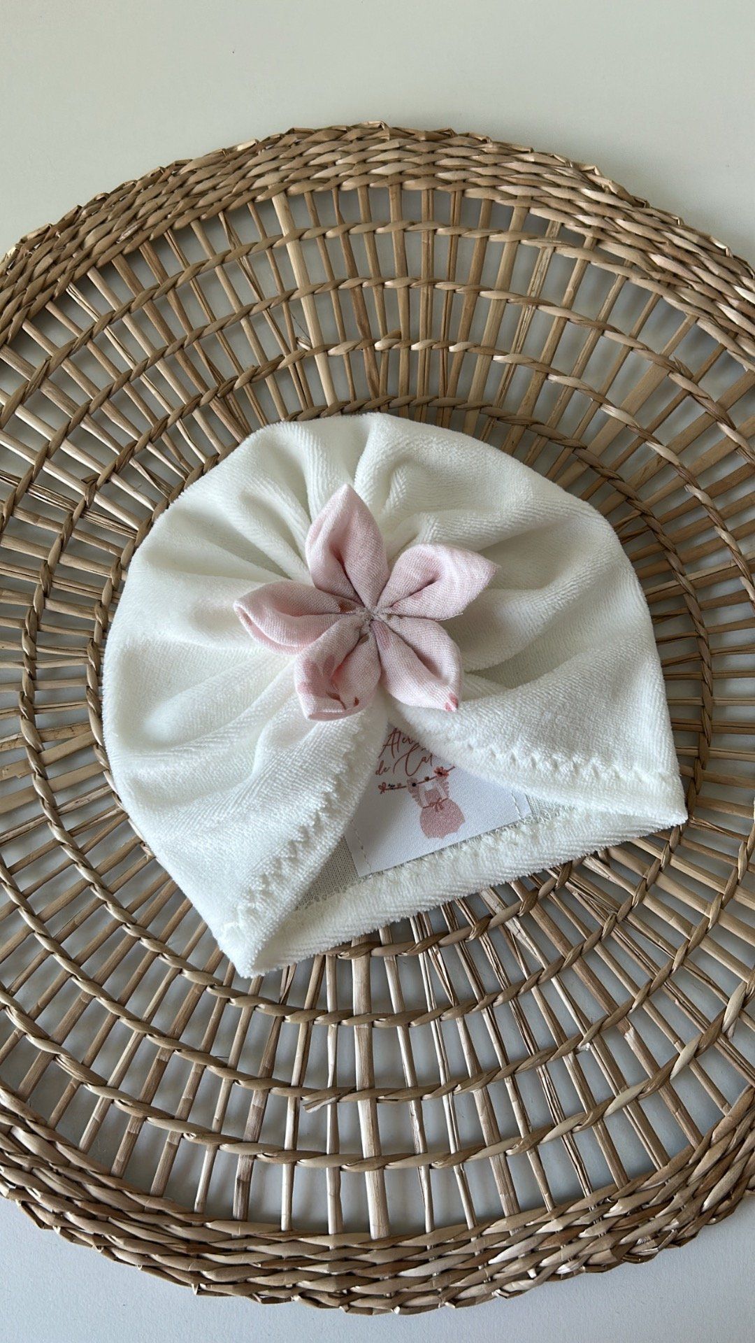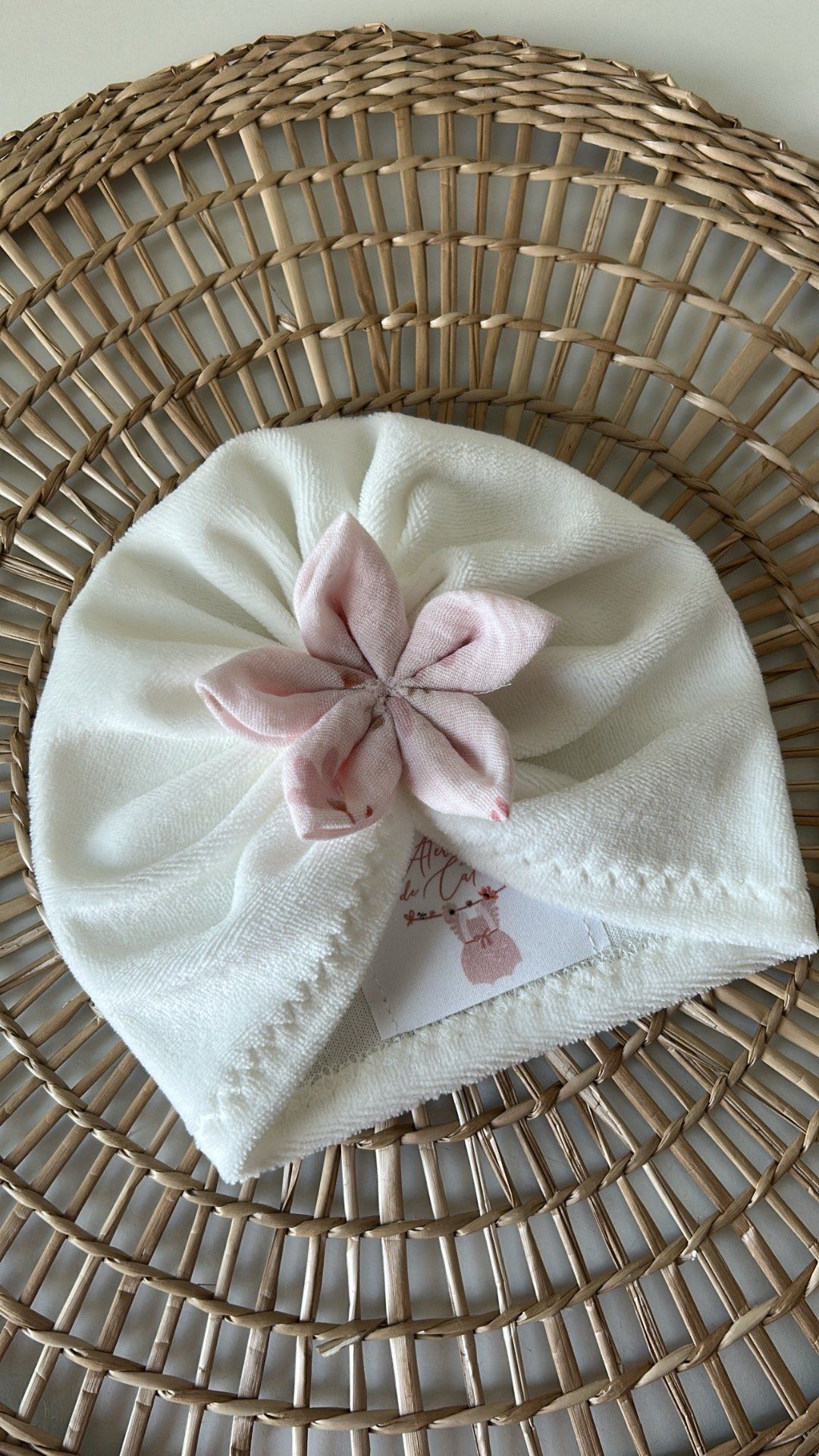 Ajoute une touche d’élégance et de douceur au look de ton bébé avec ce magnifique turban fait main. Confectionné dans un tissu doux et extensible, il s’adapte parfaitement à la tête de bébé tout en assurant confort et maintien. Le petit plus ? Sa délicate fleur en tissu rose, cousue à la main, qui apporte une note raffinée et poétique