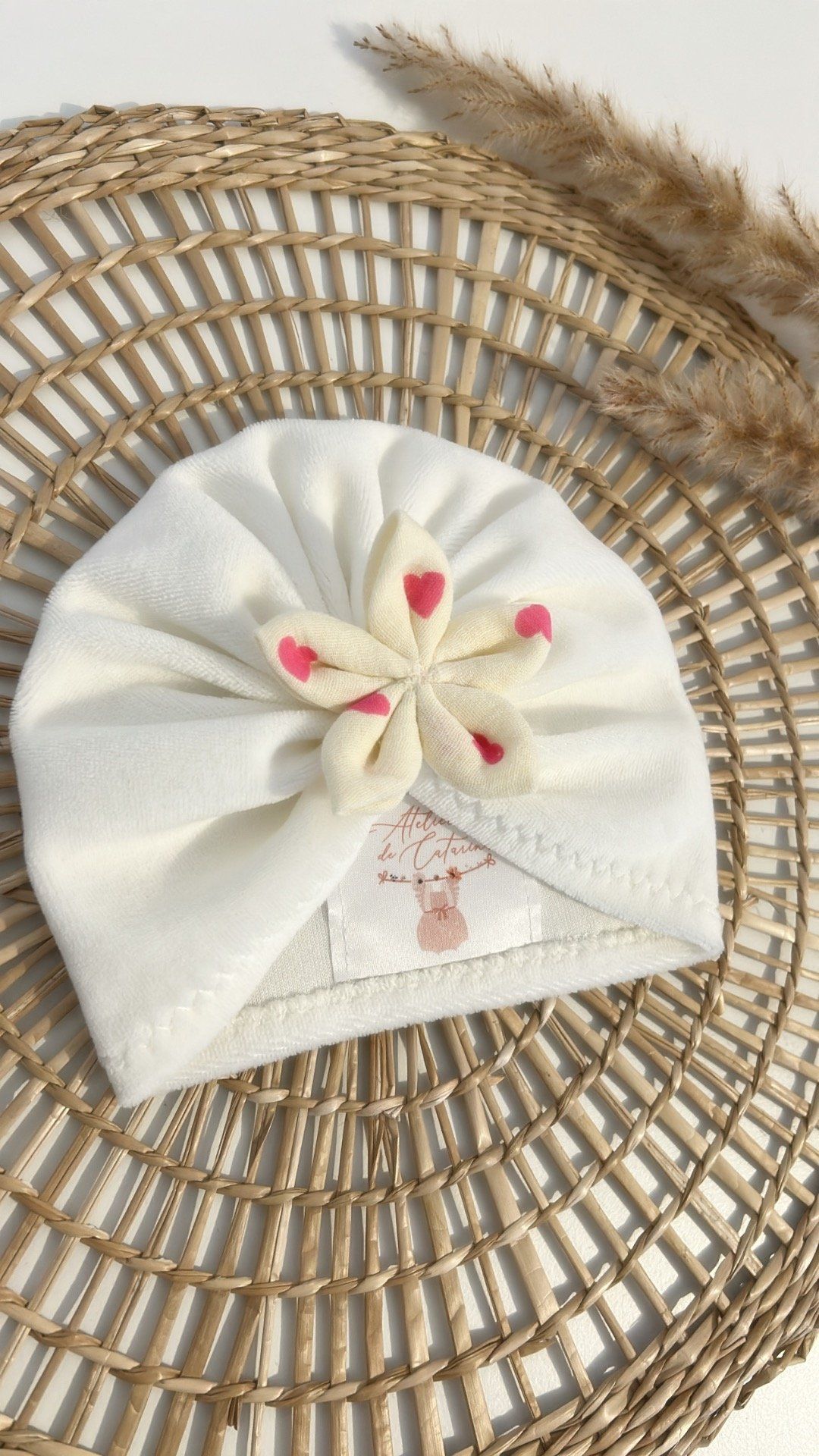Turban fleur cœurs rose – Fait main
